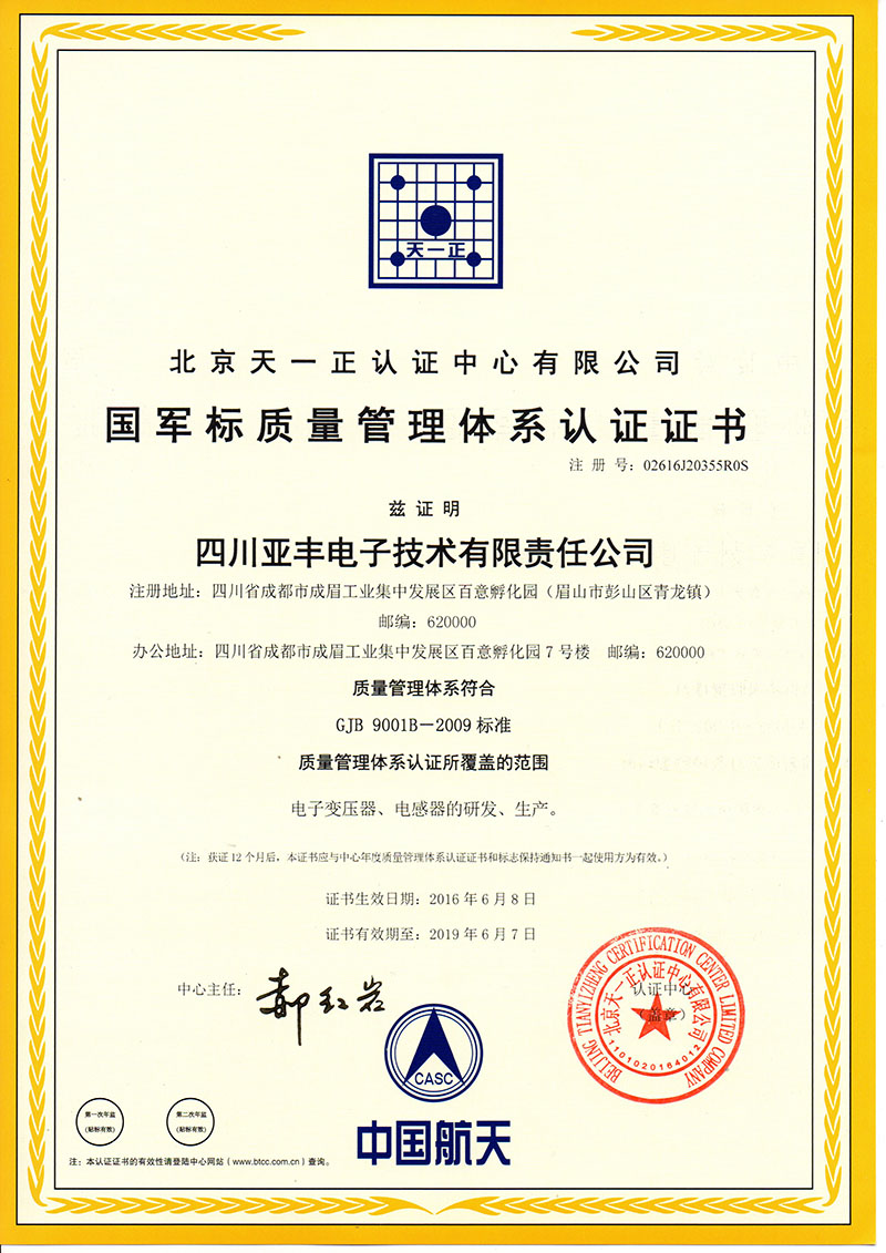 公司自2014年開始在全公司貫徹GJB9001B-2009質(zhì)量管理體系精神,通過不斷培訓(xùn)學(xué)習(xí),堅持八項質(zhì)量管理體系原則,結(jié)合公司電子變壓器、電感器產(chǎn)品質(zhì)量管理的實際情況,依據(jù)GJB9001B-2009質(zhì)量管理體系標準建立了公司的質(zhì)量管理體系。